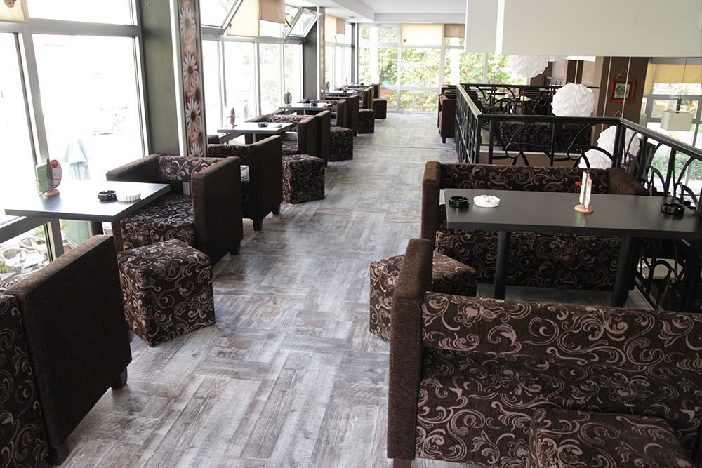 Royal caffe je jedinstven ne samo po specifičnom modernom enterijeru u kome dominiraju tople boje, već i zbog izuzetnog pogleda koji se pruža na jedan od najlepših banjskih parkova u Srbiji.