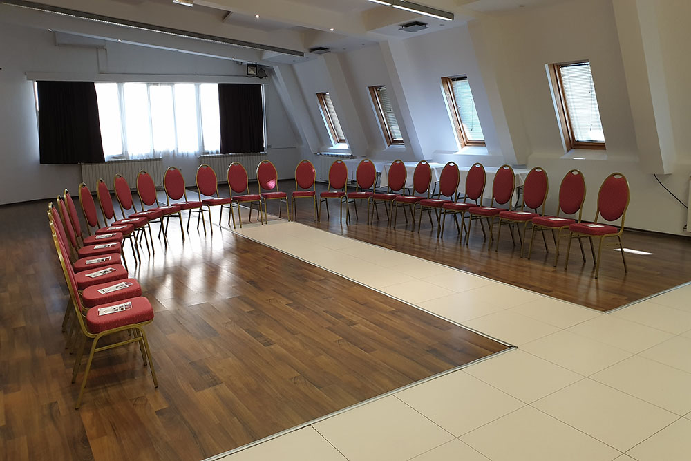 Sale su opremljene savremenom tehničkom opremom: LCD projektor i platno, flip chart, sound sistem, laptop, mikrofon, DVD player.